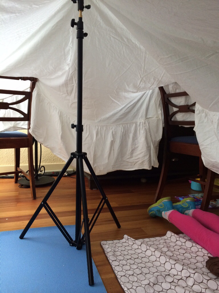 Photographers make good use of equipment. A light stand makes a great central post for a living room fort. (It has a smaller footprint than a tripod.) I recommend all parents take up photography!