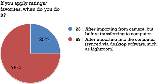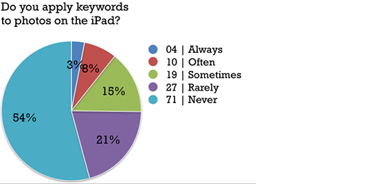 - People rarely assign ratings or favorites to elevate the good photos from the not-so-good. I suspect this is because the process of importing photos onto the iPad is still time-consuming.