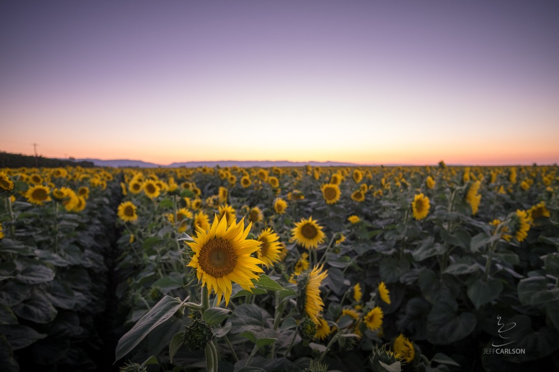 Usually when I visit my mom at the farm, I take it real easy. And I certainly did that on this week’s visit. But I also told myself I would try to do some photographing while here. One evening, my mom and I headed to a field of sunflowers in time to catch the sunset. Except for almost losing a shoe in a muddy stretch of irrigation at the edge of the field, it was a nice little excursion.