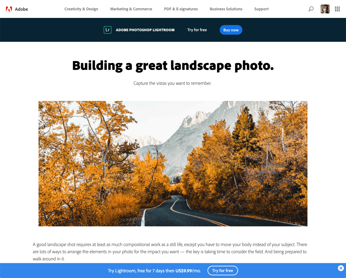 It’s worth noting that none of the photos on those pages are mine. I think Adobe may have pulled them from Adobe Stock. They’re all gorgeous.