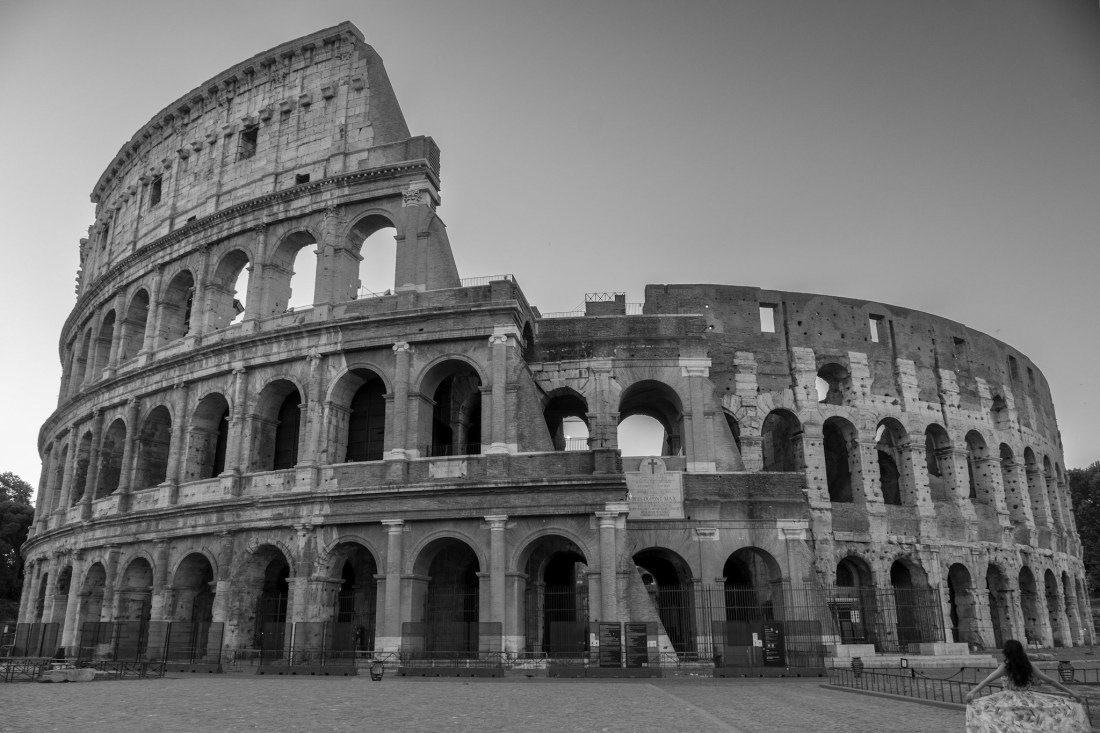 I didn’t come away from that morning at the Colosseum with the photos I set out to capture. Not even close. I’m pretty happy with the one keeper, above in black and white, although it’s not going to change anyone’s world. I decided to keep the model in the corner after all, just to make it somewhat unique. It’s a slice of that morning’s moments, not the end-all photo of one of the most photographed places on the planet.